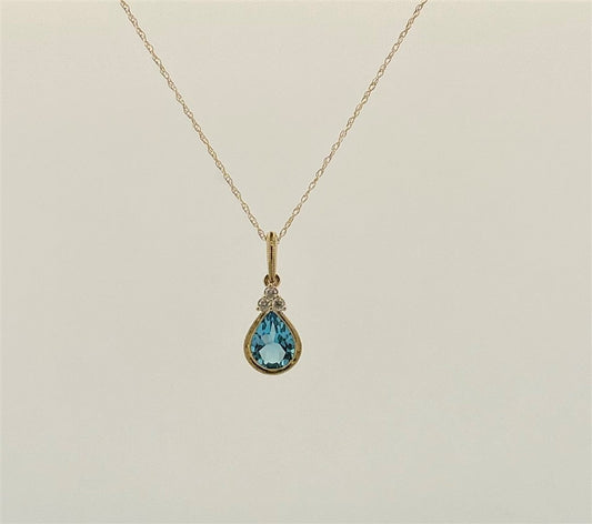 Yellow Gold Diamond Accented Blue Topaz Necklace