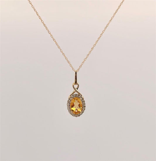Yellow Gold Diamond Accented Pink Topaz Necklace