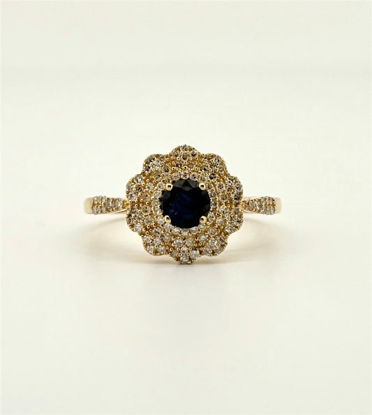 Yellow Gold Diamond Accented Sapphire Ring