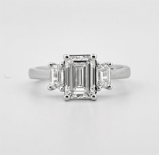 White Gold Lab Grown Diamond Three Stone Engagement Ring