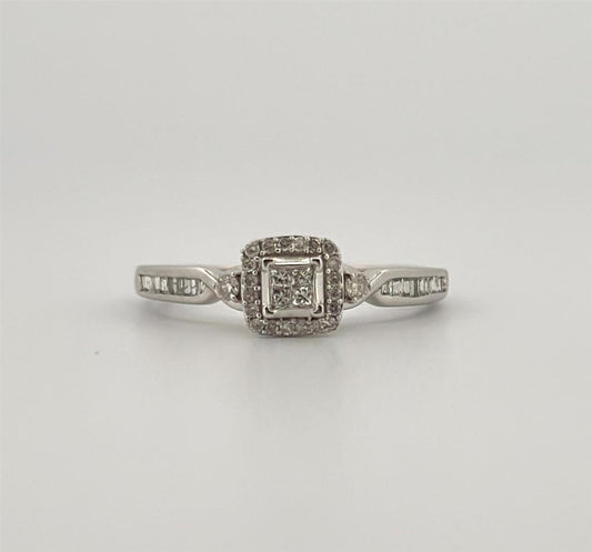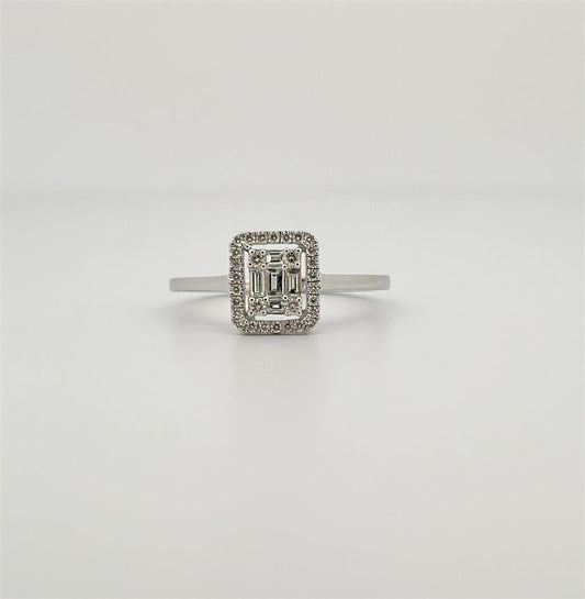 White Gold Halo Style Baguette Diamond Fashion Ring