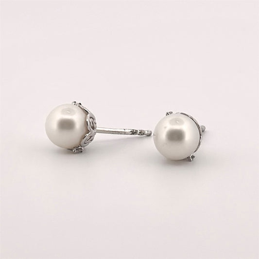 White Gold Pearl Stud Earrings