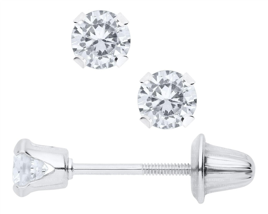 Children's White Sterling Silver 4MM Round CZ Stud Earrings With Safety Backs. Style: ES320
