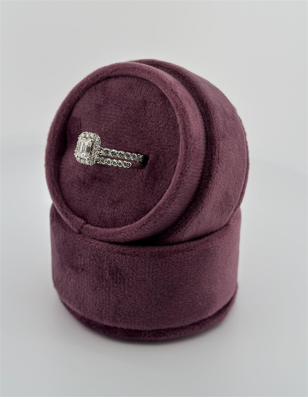 White Gold Emerald Cut Halo Style Bridal Set