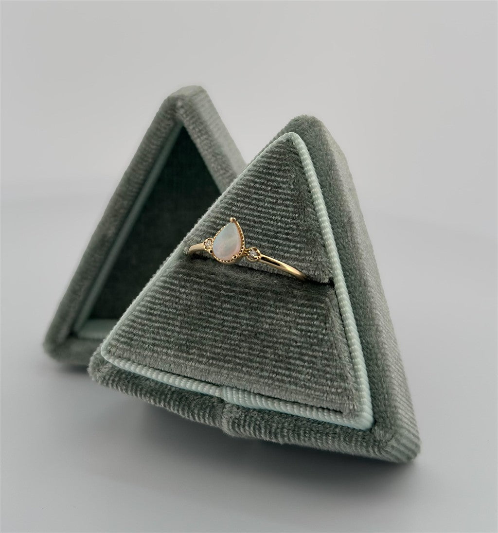 10 Karat Yellow Gold Diamond Accented Pear Shape Opal Ring. Style PS3-OCT
