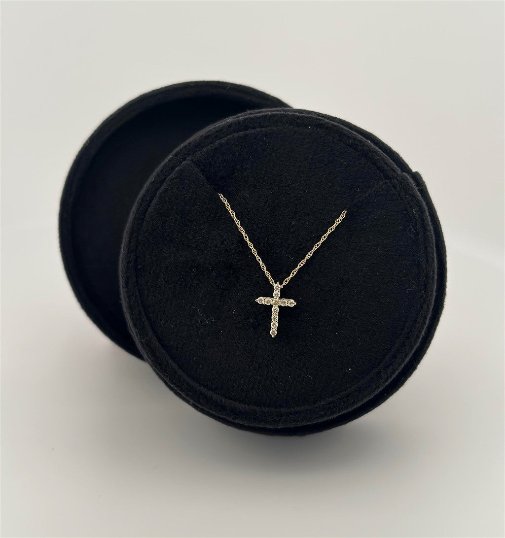 14 Karat Yellow Gold .10 Carat Diamond Cross Necklace. Style PEN4008JY